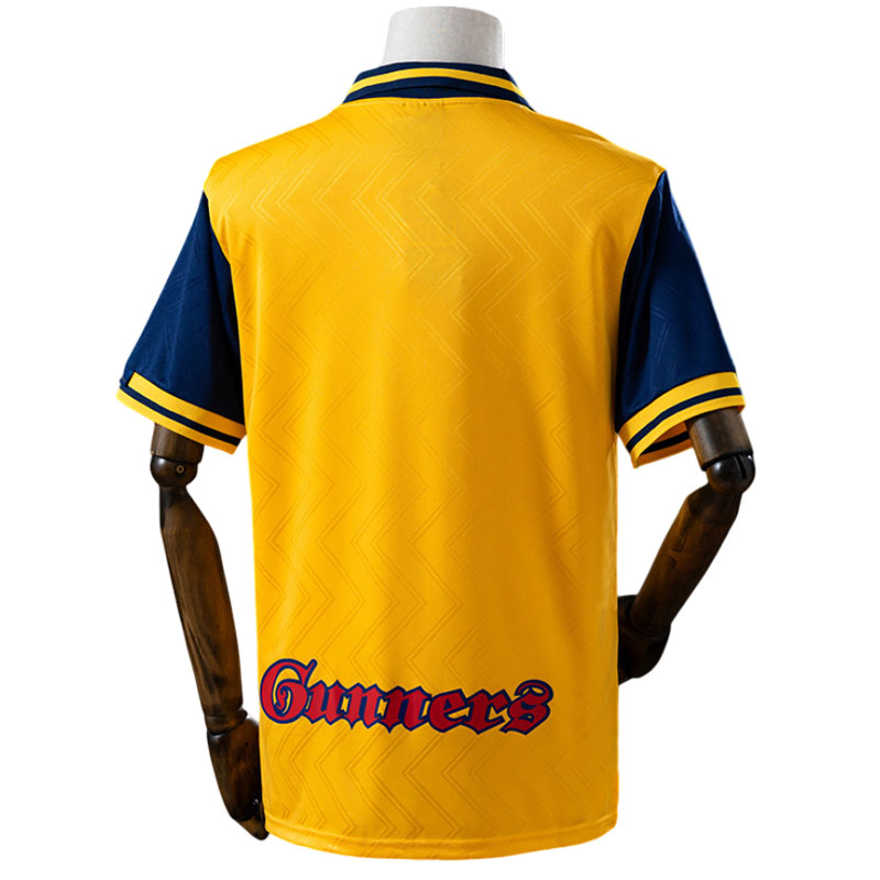 Arsenal 1996/97 gul bortetrøye – retro fotballdrakt til menn bringer tilbake minnene fra starten av Wenger-æraen, en tid som forandret klubbens historie. Denne klassiske Arsenal bortedrakt har den ikoniske gule fargen med mørkeblå bryststripe – et tidløst design som mange fans forbinder med lagets gjenfødelse på 90-tallet.