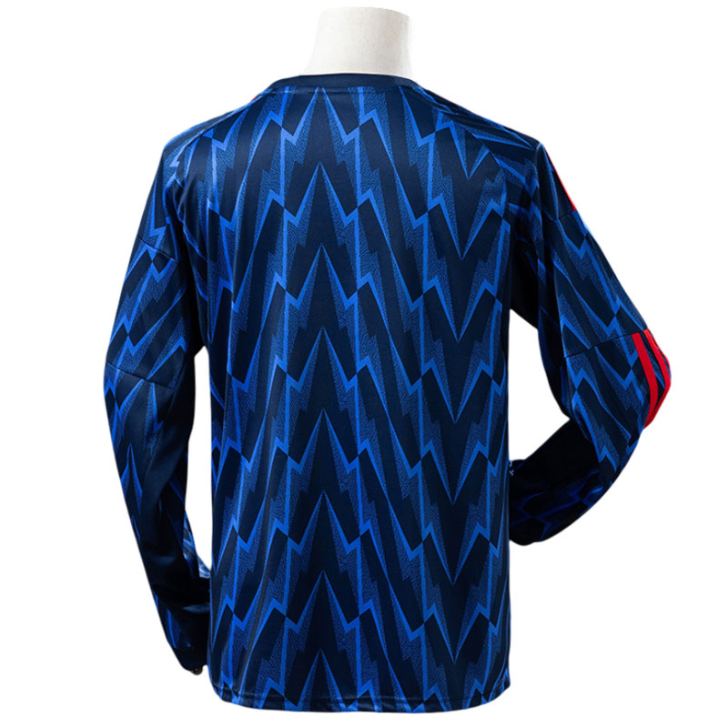 Vis ekte støtte til “The Gunners” med Arsenal 2025/26 langermet bortedrakt – fotballtrøye for menn. Den nye drakten kombinerer stil og tradisjon med et iøynefallende lynmønster i to blåtoner, inspirert av det ikoniske Royal Arsenal Gatehouse. Basen i mørk marineblå gir et moderne og kraftfullt uttrykk, mens røde detaljer på skuldrene og ermene tilfører energi og kontrast.