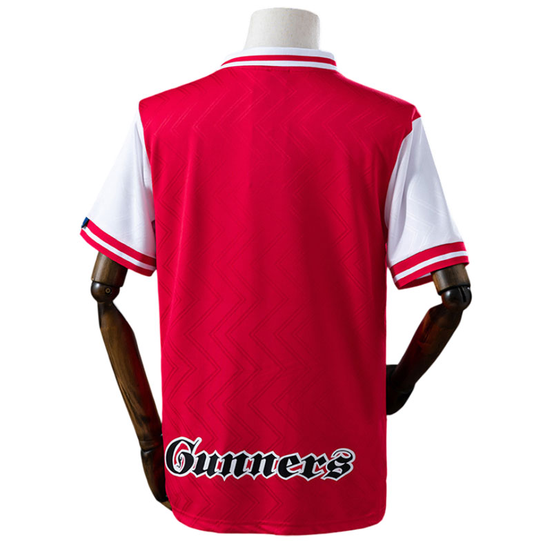 Arsenal 1996/98 herre retro hjemmedrakt er en klassisk fotballdrakt i rød og hvit med kontrastfargede ermer, inspirert av de legendariske dobbeltvinnende sesongene 1996–97 og 1997–98. Denne ikoniske Arsenal drakten bringer tilbake minnene fra storhetstiden med spillere som Dennis Bergkamp, Patrick Vieira og Tony Adams.