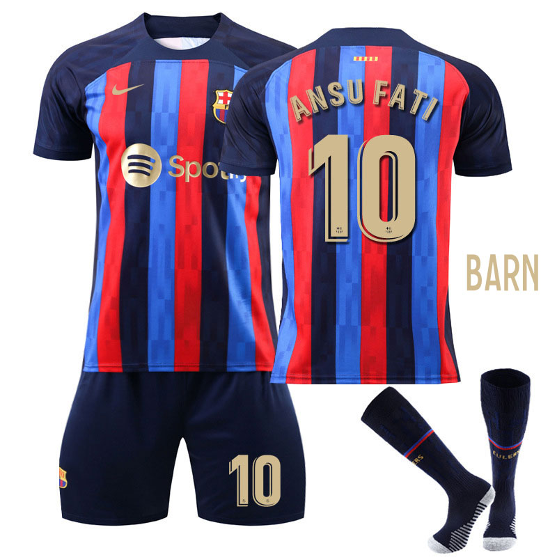 Her finner du FC Barcelona drakter i flere ulike farger. Komfortabelt, hurtigtørkende og fuktabsorberende materiale i fotballdrakt. Billige Fotballdrakter F.DE JONG 21 FC Barcelona Barn Hjemmedrakt 2022-2023 Kortermet er perfekt hele året!