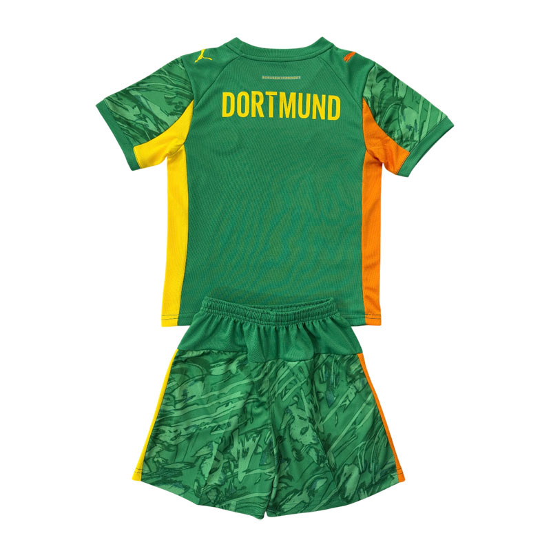 Borussia Dortmund 2025/26 grønn keeperdrakt er et komplett fotballsett med trøye og shorts, designet for både barn og voksne. Denne fotballdrakten i frisk grønn farge gir en moderne look på banen, samtidig som den er laget i lett og pustende materiale for maksimal komfort under trening og kamp.