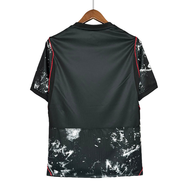 Canada bortedrakt 2026/27 – fotballdrakt for herre VM 2026 skiller seg ut med et dristig og moderne design. Den mørke svarte basen kombineres med et unikt, hvitt grafisk mønster som dekker hele fronten, ermene og deler av ryggen. Resultatet er en iøynefallende Canada fotballtrøye som gir et kraftfullt uttrykk både på banen og utenfor.