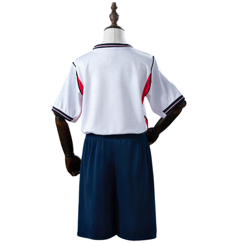 England hjemmedrakt 2026 for barn er et flott valg for små fans som vil ha en komfortabel og lett barn fotballdrakt til den kommende turneringen. Den klassiske hvite England fotballtrøye barn har et moderne jacquardmønster, elegante navy-detaljer og røde sidefelt som gir drakten et friskt uttrykk. Dette VM 2026 fotballsettet er laget for god bevegelsesfrihet og pusteevne, slik at barna kan spille og leke uten å føle seg tunge eller varme.