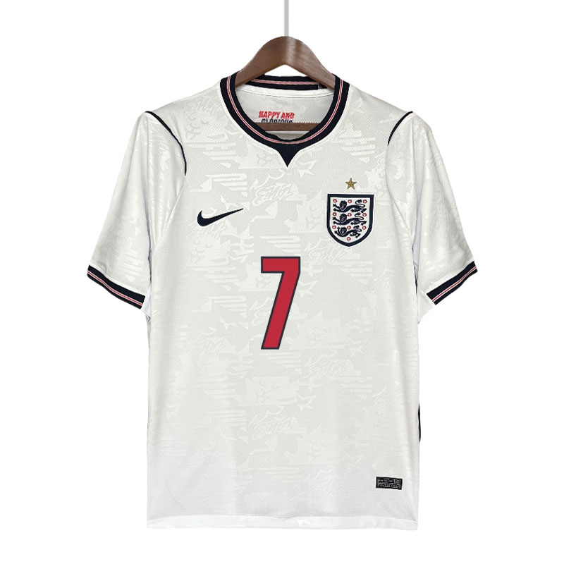 England fotballdrakt herre VM 2026 – Saka 7 hjemmedrakt kortermet er inspirert av det som bæres av profiler som Bukayo Saka, Marcus Rashford og Cole Palmer på den største scenen i internasjonal fotball. Denne England hjemmedrakt 2026 kombinerer et rent hvitt design med markante røde sidepaneler og elegante detaljer i marineblått, hvitt og rødt på krage og ermer – et klassisk uttrykk som samtidig føles moderne.