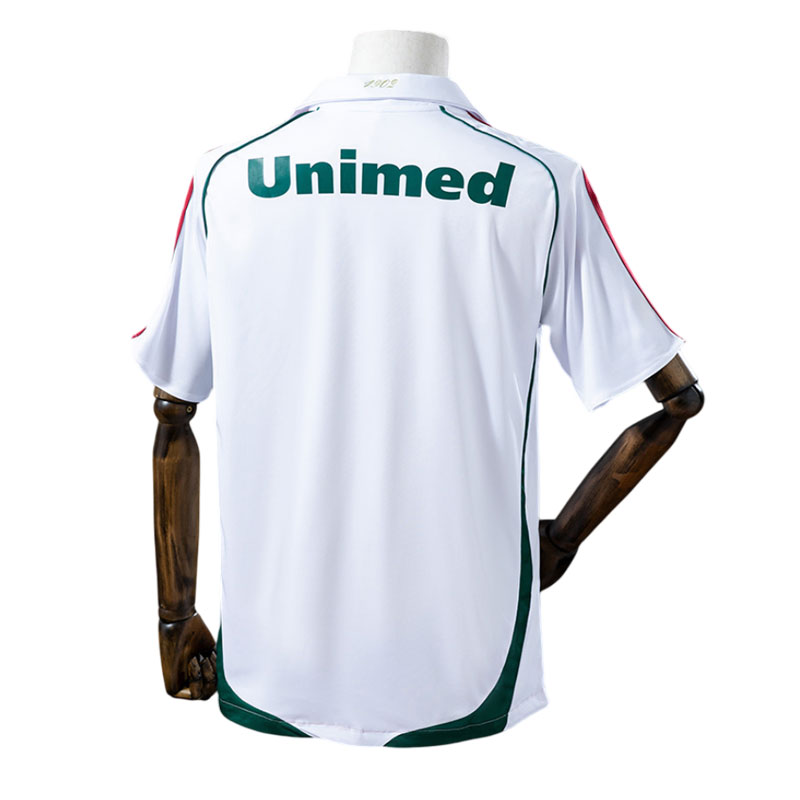 Gjenopplev fotballhistorien med Fluminense 2009 bortetrøye retro fotballdrakt for menn – en tidløs hvit drakt med det ikoniske skrå båndet i vinrødt og grønt. Denne elegante bortedrakten kombinerer klassisk stil med moderne komfort, perfekt for både samlere og fans som elsker autentisk fotballkultur.