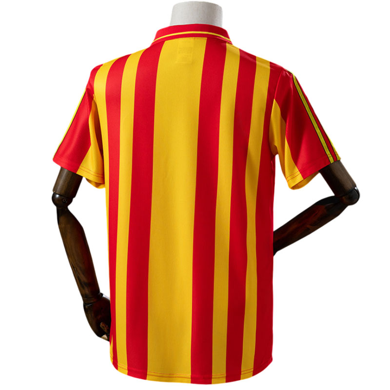 Galatasaray retro hjemmedrakt 1999/2000 – klassisk rød og gul fotballdrakt for menn hyller en av klubbens mest legendariske sesonger. Denne ikoniske Galatasaray fotballdrakt har de karakteristiske røde og gule stripene kombinert med svarte detaljer, og ble brukt da laget tok både liga- og cupgull, samt vant UEFA Cup etter en dramatisk straffesparkkonkurranse mot Arsenal.