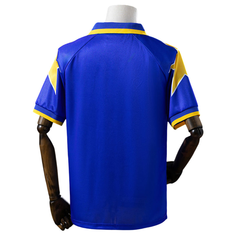 Juventus FC 1995/96 retro fotballdrakt – bortedrakt for menn henter inspirasjon fra en av klubbens mest minneverdige sesonger i historien. Denne klassiske trøyen minner om den legendariske Champions League-finalen i 1996, der Juventus sikret sin andre europeiske tittel etter en dramatisk straffesparkkonkurranse mot Ajax. Drakten har et tidløst retrodesign med elegante detaljer, brodert klubbmerke og klassiske nummertrykk som gir et autentisk preg.