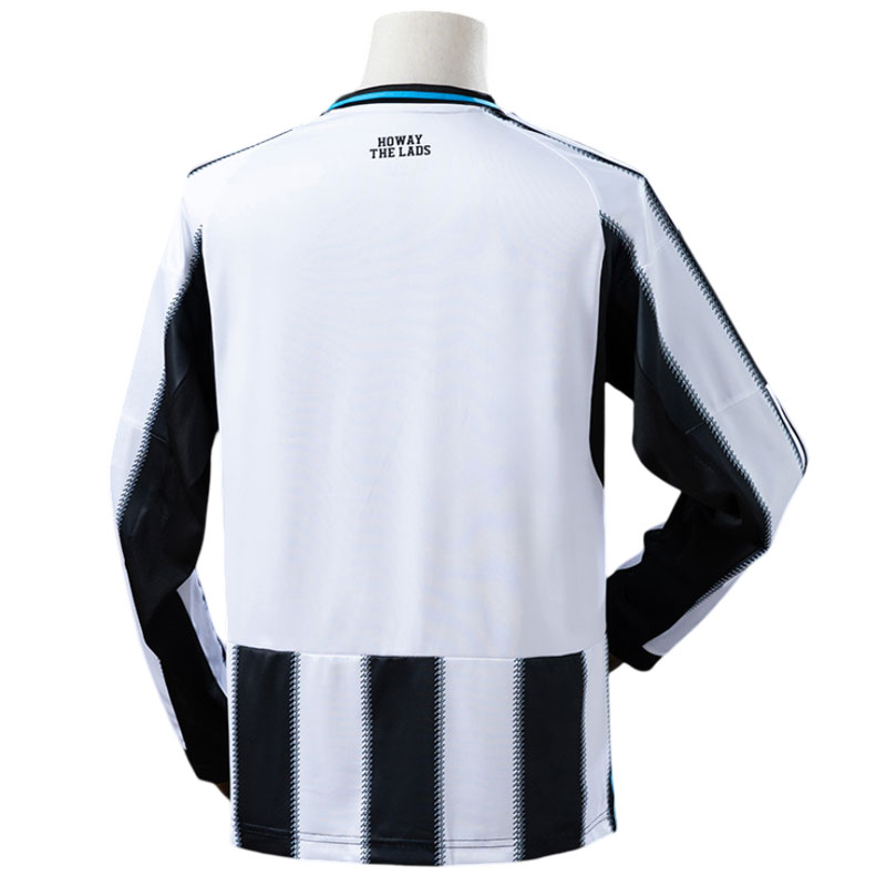 Newcastle United herre fotballdrakt 2025/26 hjemmedrakt langermet kombinerer klassiske svarte og hvite striper med et moderne design som hyller klubbens nordlige røtter. Det unike mønsteret er inspirert av det tradisjonelle “shepherd’s check”, elegant vevd inn i draktens vertikale striper for å skape et eksklusivt uttrykk.