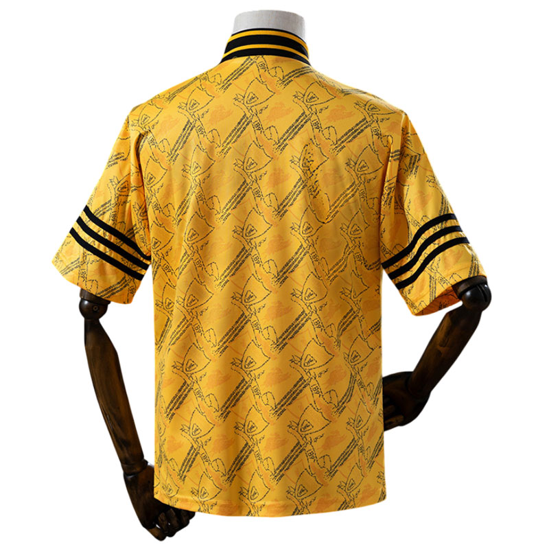 Gjenopplev storheten fra 90-tallet med Liverpool FC 1994–96 retro tredjedrakt – gul fotballdrakt for menn. Denne ikoniske tredjetrøyen har et grafisk design i gult og svart som ble brukt i en av klubbens mest minneverdige sesonger under Roy Evans.
