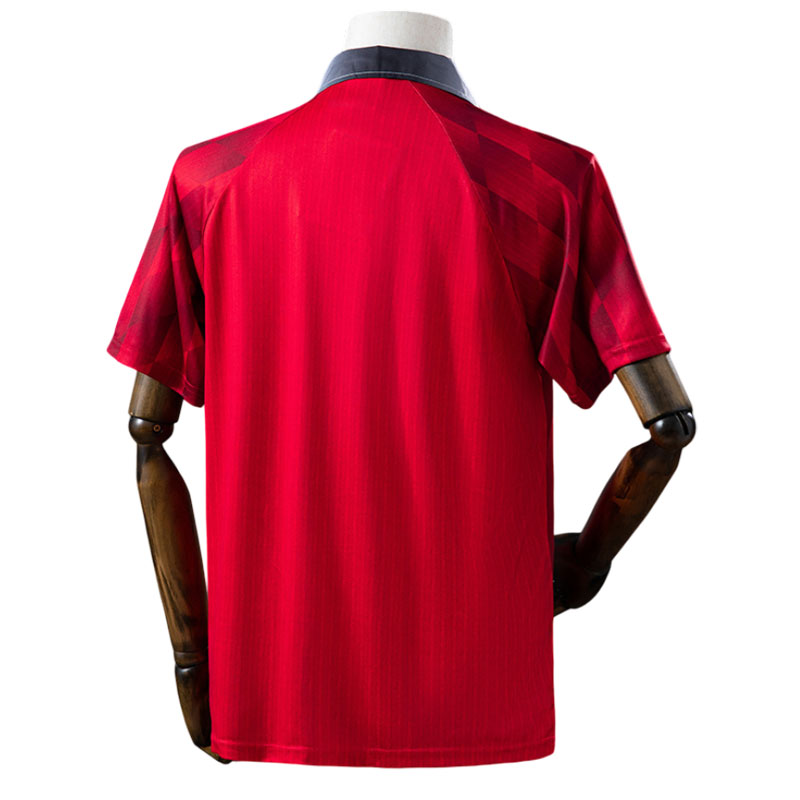 Gjenopplev storhetstiden med denne Manchester United retro hjemmedrakten 1996/98 – en klassisk herre fotballdrakt i ikonisk rød og svart design med grafiske detaljer som vekker ekte 90-tallsnostalgi. Denne retro fotballdrakten representerer en æra der United dominerte engelsk fotball med stjerner som Ryan Giggs, Eric Cantona og David Beckham.