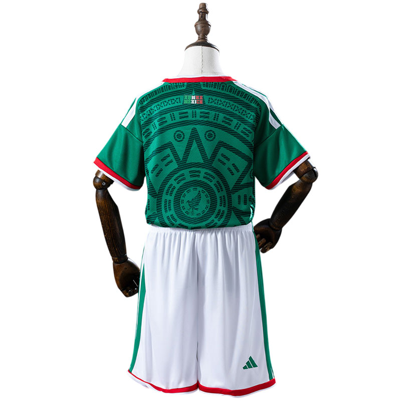 Drakten kan bestilles med personlig trykk, enten barnets eget navn og nummer eller favorittspillere som Lozano, Jiménez eller Álvarez. Det gjør settet til en perfekt gave til små Mexico-fans. Den myke doble stoffstrukturen gir god bevegelighet, mens shortsen sitter behagelig gjennom hele kampen.