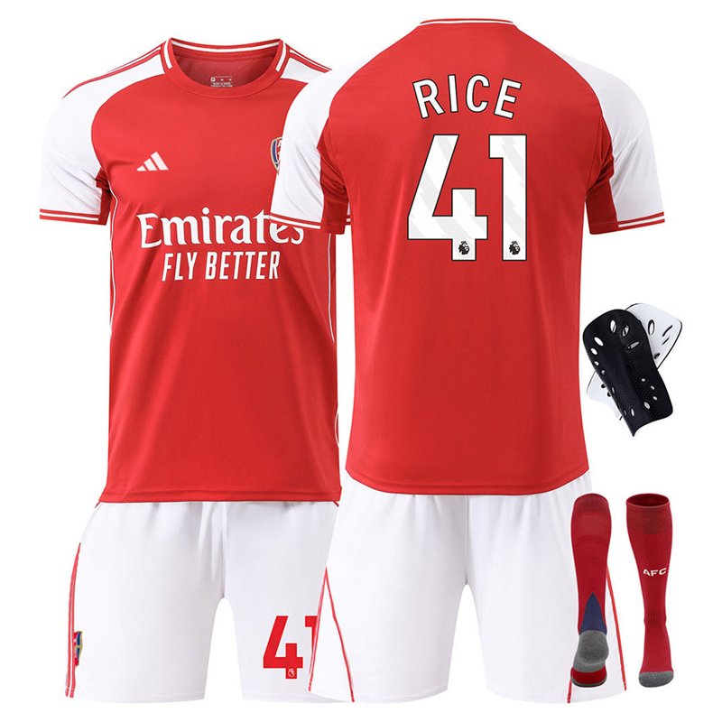 Arsenal FC barnesett 2025/26 bortedrakt med Rice 41 bakpå