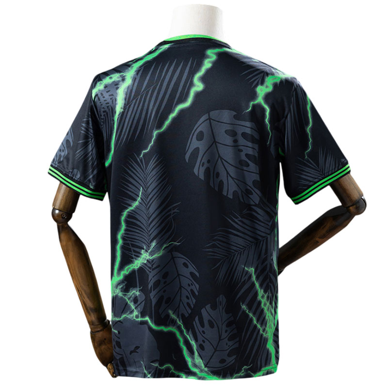 Ta energien fra Bernabéu med deg på banen med denne spesialutgaven av Real Madrid 2025/26-drakten. Designet med et unikt lynmønster og mørk base som fremhever klubbens dynamiske stil, kombinerer denne drakten moderne uttrykk med ekte fotballpassion. De elektriske grønne detaljene gir et friskt og kraftfullt preg, mens det lette, pustende stoffet holder deg komfortabel både på og utenfor banen.