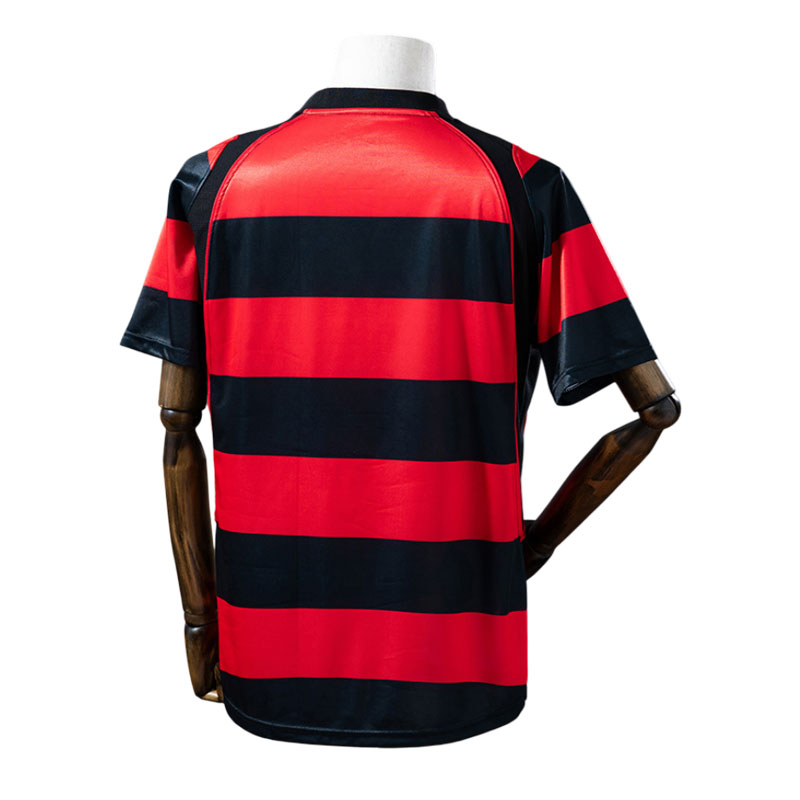 Detaljene, som de brede røde og svarte hoops-stripene og den klassiske kragen, gir drakten et autentisk preg som minner om de store kampene fra 2000-tallet. Trøyen kan tilpasses med eget navn og nummer, eller med legendariske spillere som Adriano og Juan, som bar fargene med stolthet.