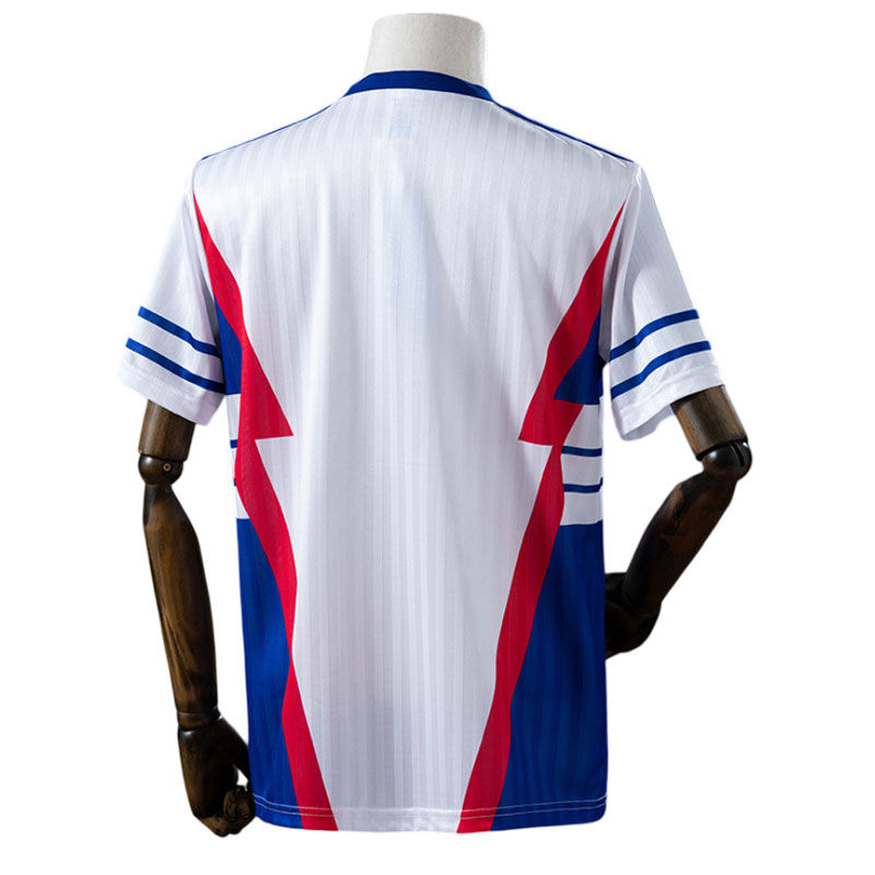 Gjenopplev fotballens gullalder med Jugoslavia 1990 retro bortedrakt for menn – en klassisk fotballdrakt i hvitt, rødt og blått design med ikoniske grafiske detaljer. Denne drakten er perfekt for samlere og supportere som elsker autentisk retrostil. Materialet er behagelig og pustende, ideelt både til bruk på banen og til hverdags.