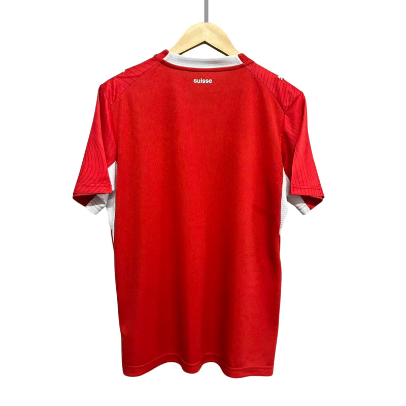 Sveits 2026 VM hjemmedrakt er en moderne rød fotballdrakt med hvite detaljer og et elegant grafisk mønster inspirert av det sveitsiske passet. De intrikate linjene på drakten symboliserer landets stolthet og presisjon – perfekt for deg som vil støtte Sveits under verdensmesterskapet i 2026. Denne hjemmetrøyen kombinerer klassisk design med moderne stil og passer både til kamp og fritid.
