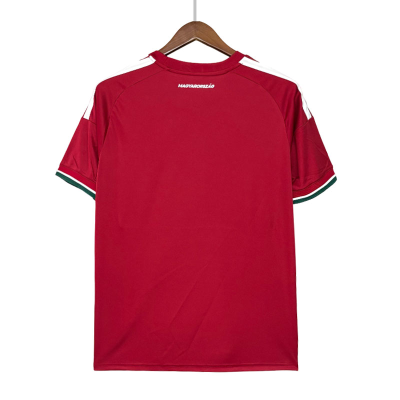 Ungarn 2026/27 hjemmedrakt – rød fotballdrakt herre VM 2026 er en stilren og klassisk fotballtrøye inspirert av Ungarns stolte fotballhistorie. Den kraftige røde hovedfargen gjenspeiler nasjonalfargene, mens hvite detaljer på skuldrene og grønne elementer på ermene skaper en harmonisk og gjenkjennelig stil. På brystet finner du både landslagsemblemet og et spesielt jubileumsmerke som markerer 125 år med fotballtradisjon.